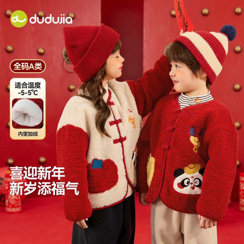 嘟嘟家儿童拜年服宝宝唐装红色外套男童过年女童冬装上衣新年衣服