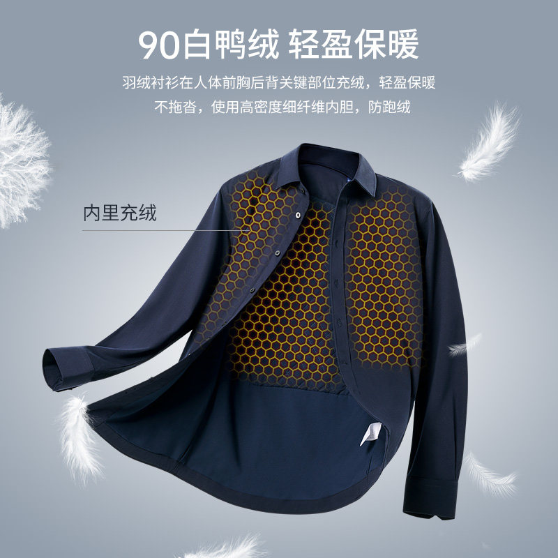 衬衫老罗[总裁T9]冬季保暖男士羽绒衬衫保暖商务白衬衣249B0F641L