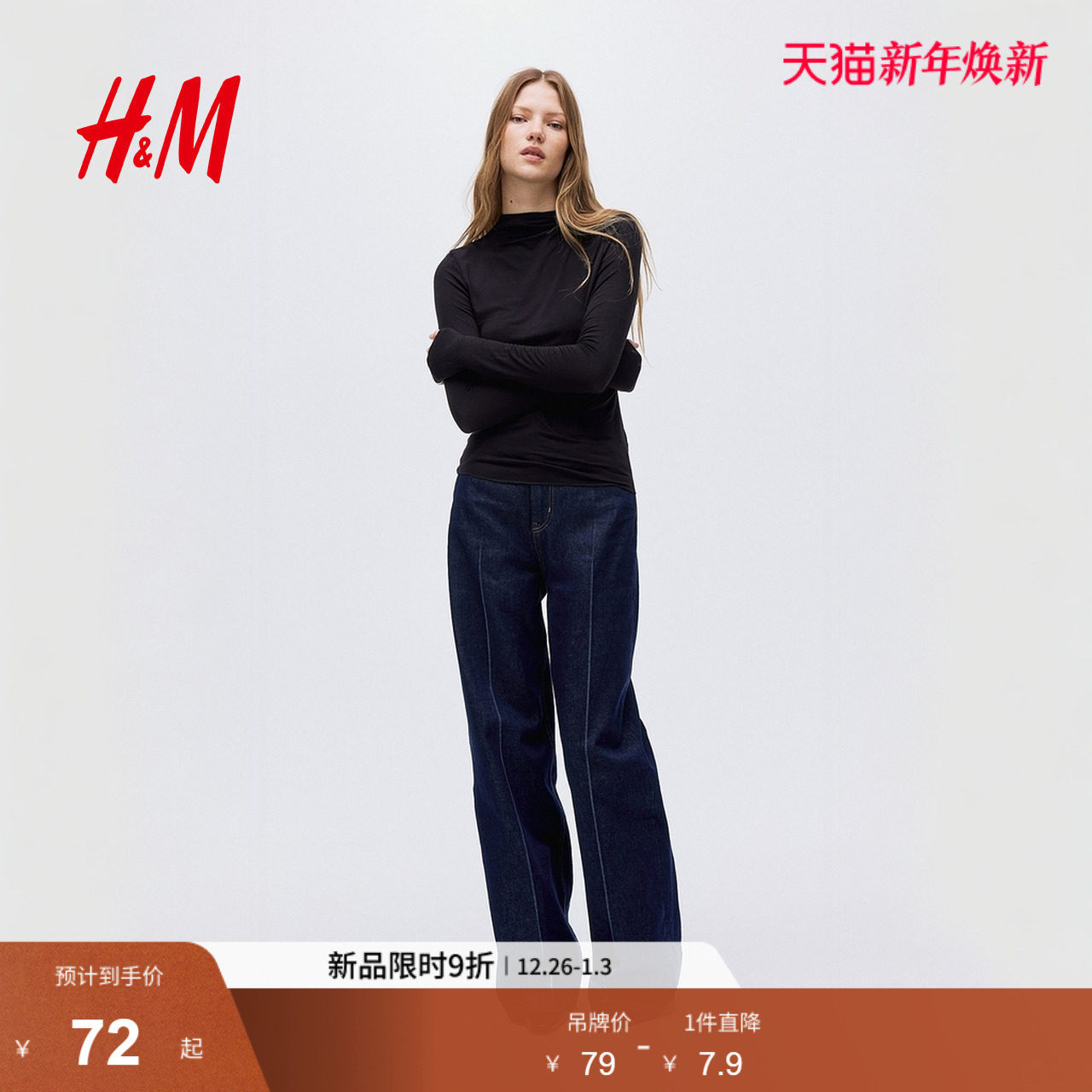 HM女装T恤2025冬季新款高领打底内搭保暖长袖简约休闲上衣1310021