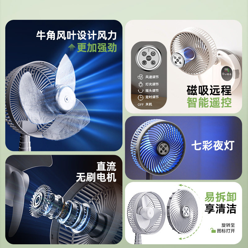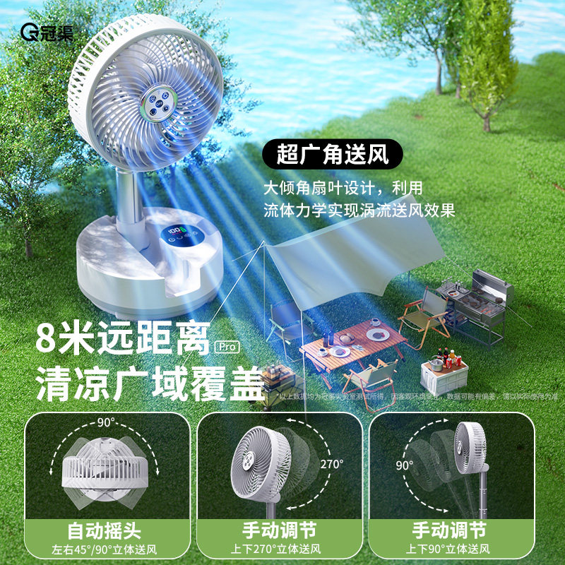 自动摇头空气循环扇电风扇家用落地扇静音遥控立式涡轮台式宿舍充电电扇露营便携折叠伸缩超强续航大风力夏天