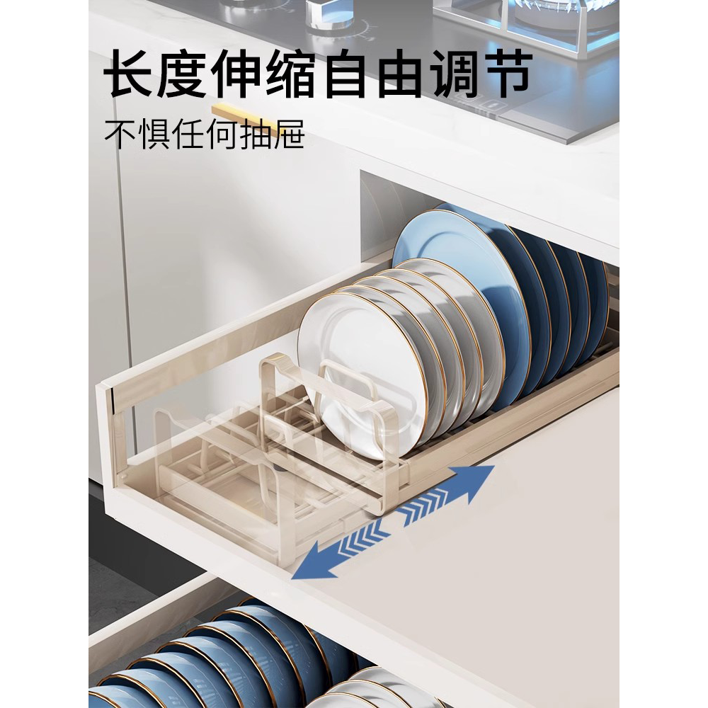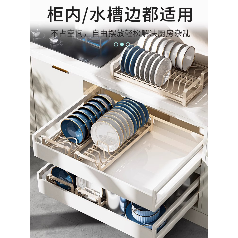 碗碟收纳架厨房置物架抽屉内置放盘子沥水架碗架柜内分隔拉篮神器