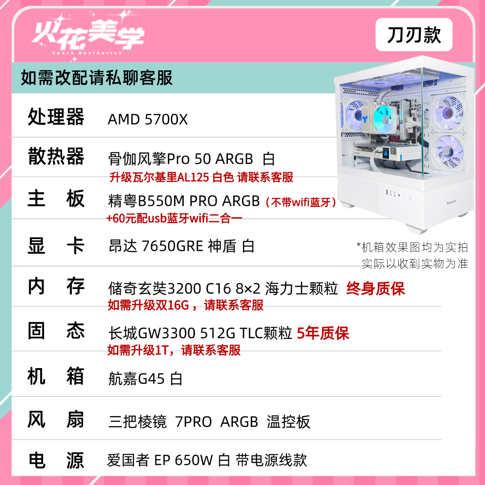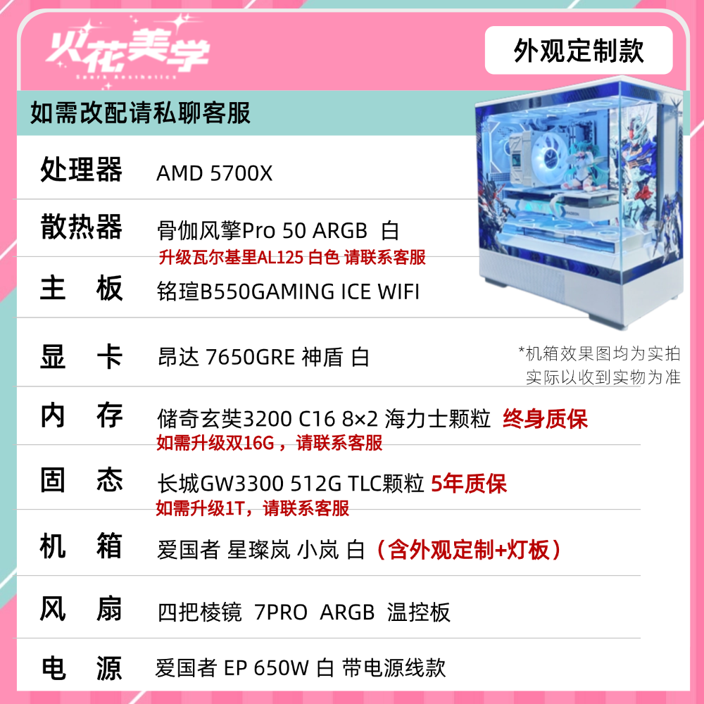 4500元定制主机 AMD5700X+昂达7650 DIY游戏电脑主机整机