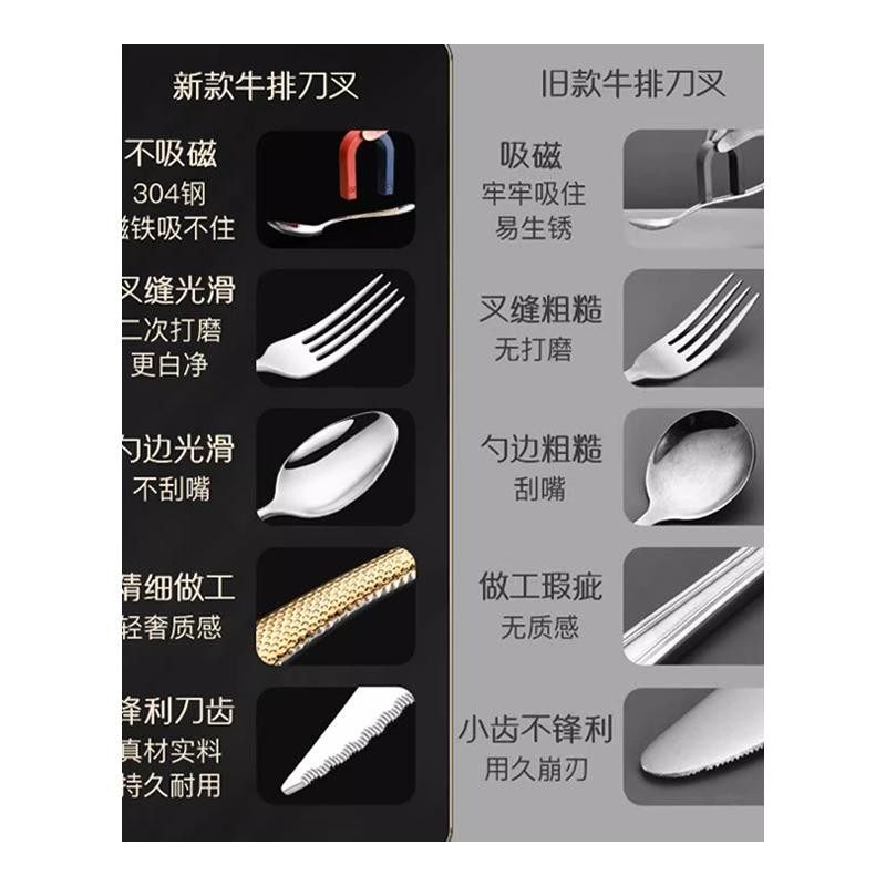 西餐牛排刀叉餐具套装家用高档304不锈钢切刀叉勺三件套轻奢