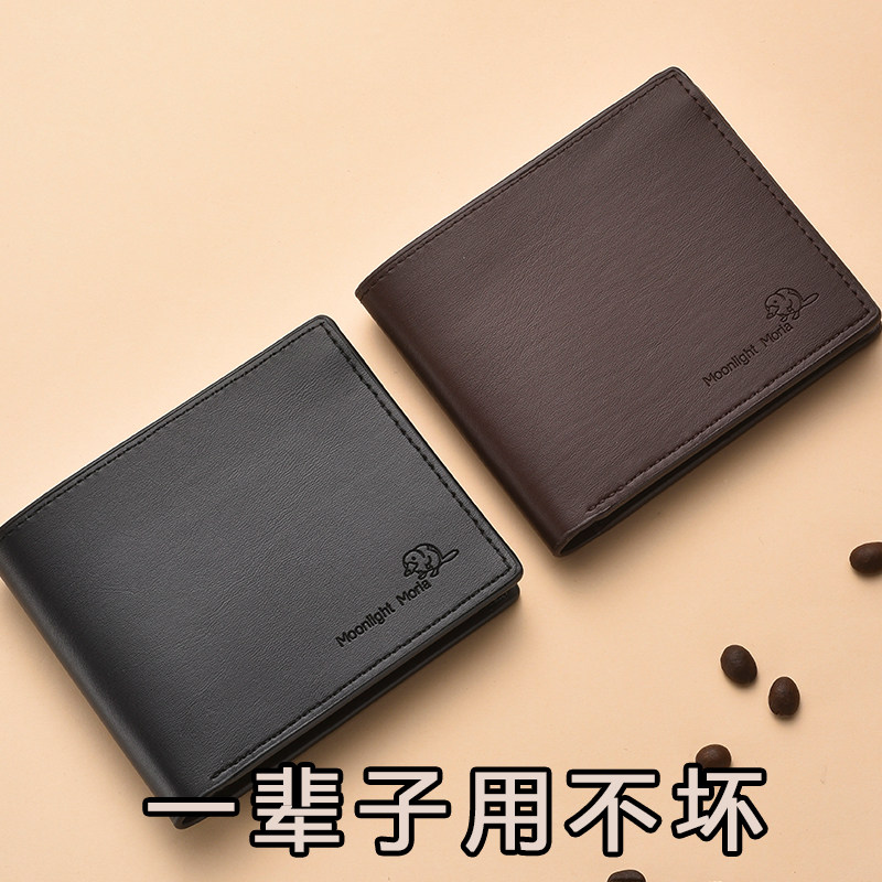 【真皮】皮尔卡丹男士钱包真皮短款送男友老公礼物牛皮驾驶证皮夹
