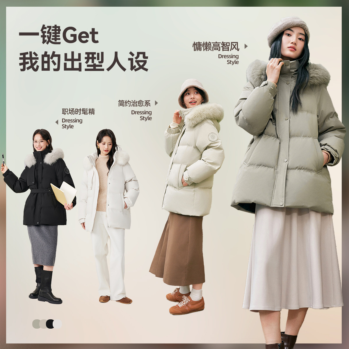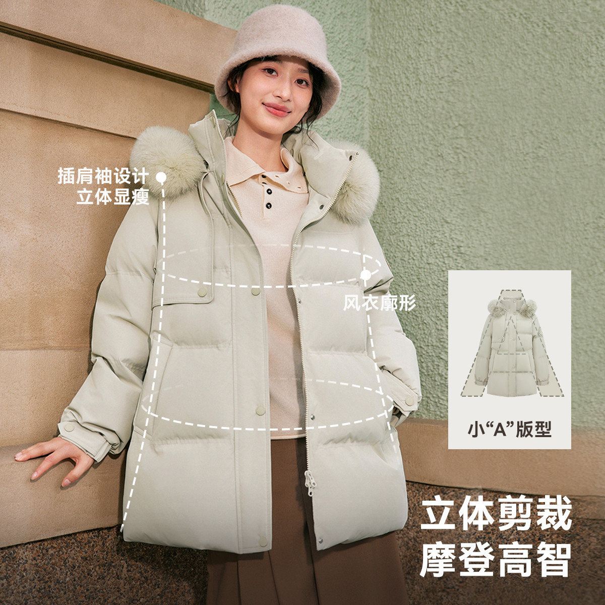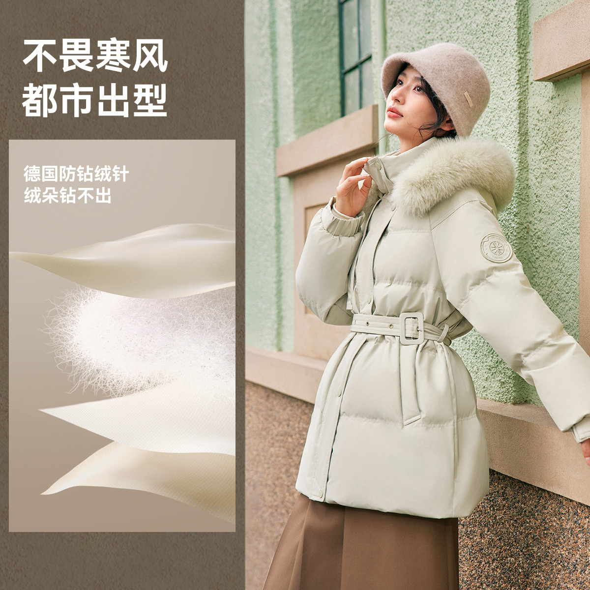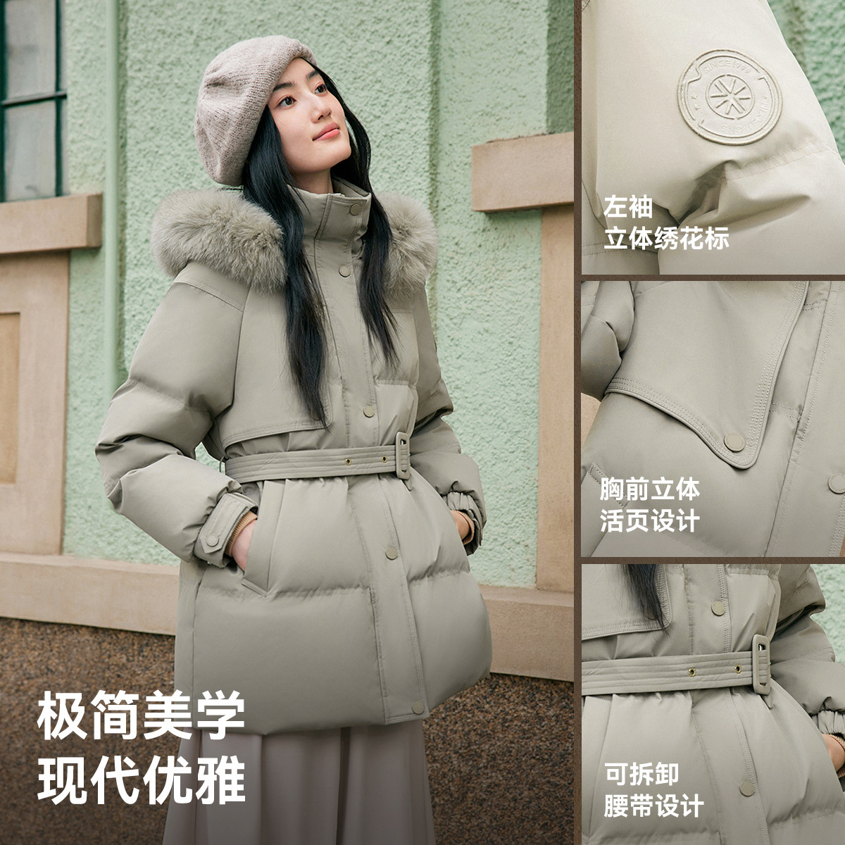 【李佳琦直播间】雪中飞2025鹅绒男女貉子毛领复古工装派克羽绒服