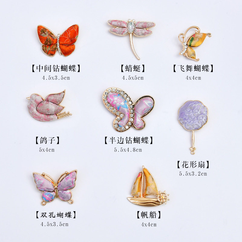 新中式宋锦diy胸针材料包配饰底胚配件布贴饰品高端暖场活动礼品