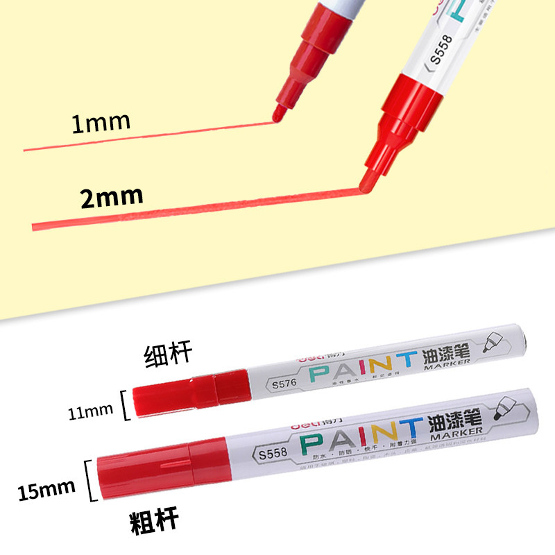 单支装●白色油漆笔划痕修复黑色金色得力字母补墙笔描胎笔白色不掉色耐防水汽车轮胎笔改装特粗大号S558防锈
