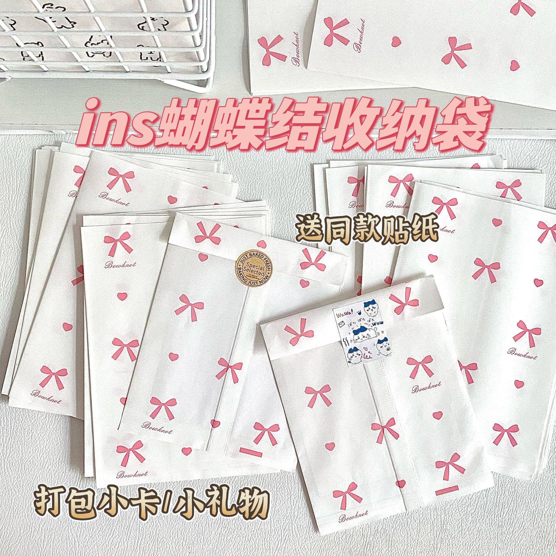 ins粉色蝴蝶结爱心纸袋高颜值小卡手账小礼物包装打包出货diy袋子
