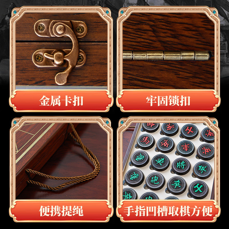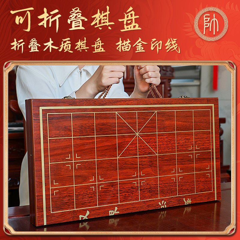 中国象棋实木金丝楠酸枝黑檀红木象棋带棋盘折叠家用大号象棋高档