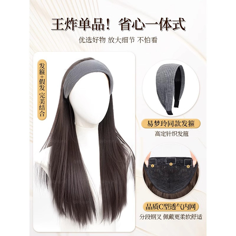 发箍假发一体长直发半全头套女高颅顶帽子长发黑长直仿真发假发套