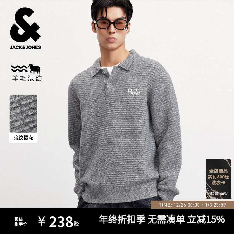 【5%羊毛】杰克琼斯男装POLO领百搭潮流毛衣肌理提花针织衫