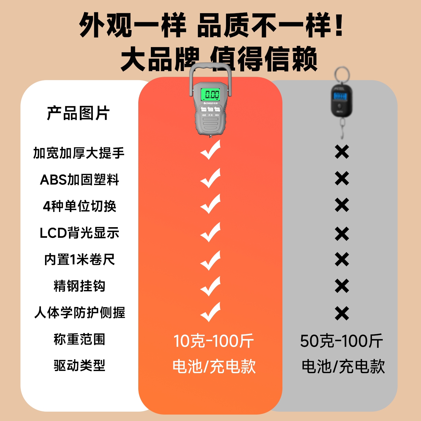 志高手提电子秤便携式高精度家用迷你快递钩秤称鱼小型弹簧行李秤
