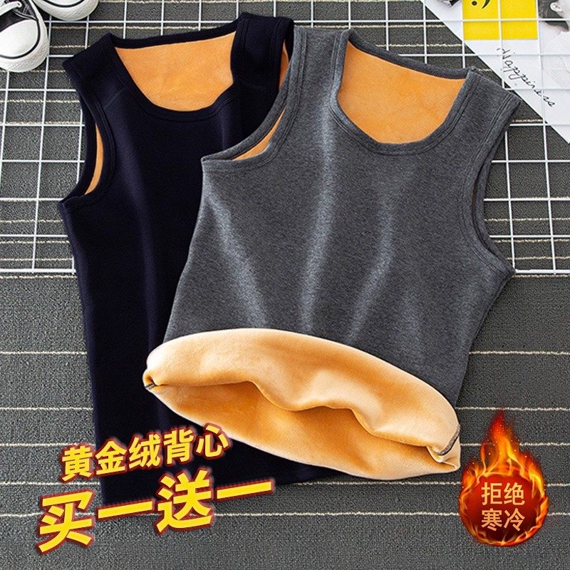 冬季黄金绒加绒加厚保暖背心男坎肩青年恒温棉修身内衣大码马甲潮