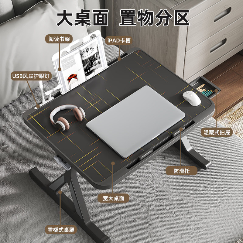 可折叠床上小桌子桌面可旋转电脑桌学生学习桌飘窗沙发画画桌桌腿