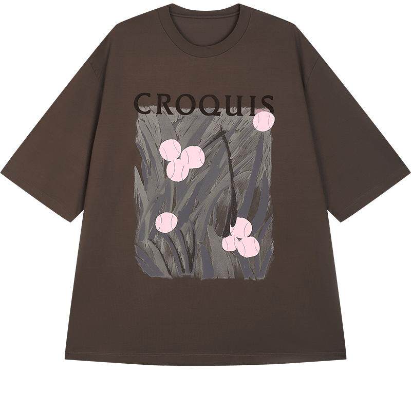 速写男装春夏新款男士短袖T恤棉质手绘油画花卉图案宽松上衣休闲