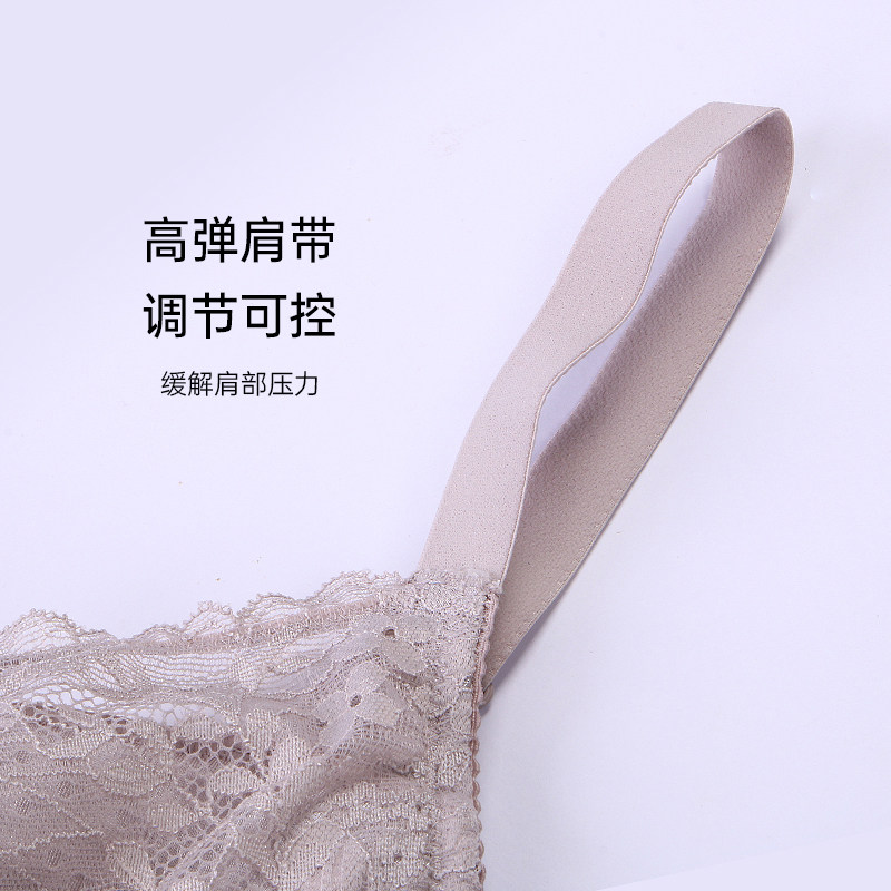润微茶肌内衣女士大胸显小薄款收副乳聚拢大码上托防下垂蕾丝文胸