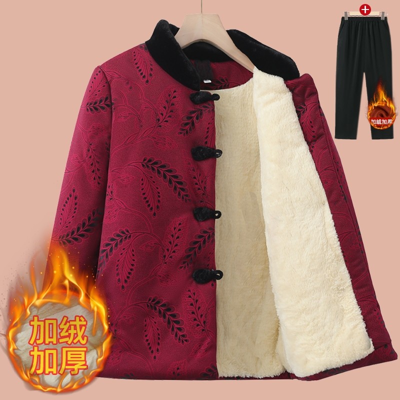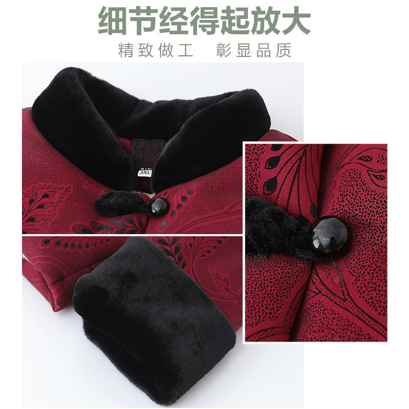 妈妈冬装碎花棉衣中老年人新款加绒贴片保暖棉服奶奶内外穿小棉袄