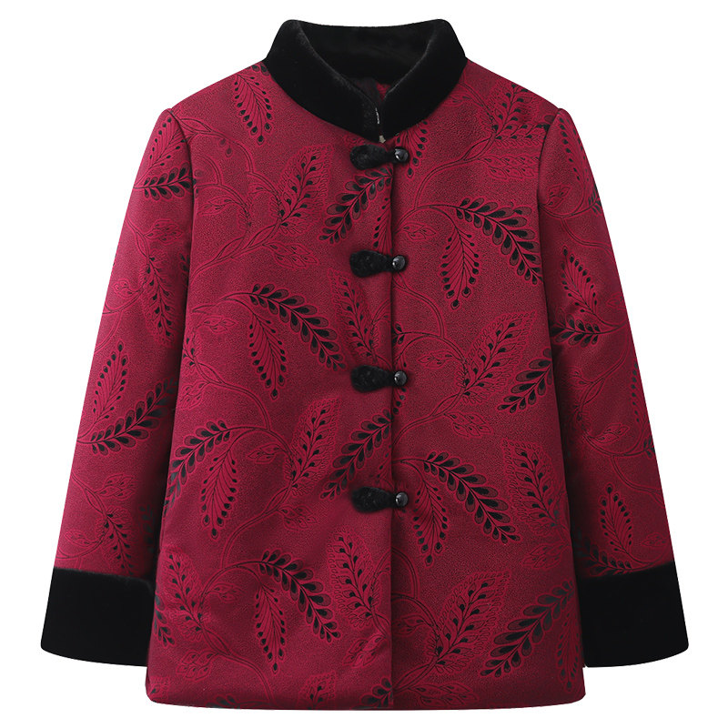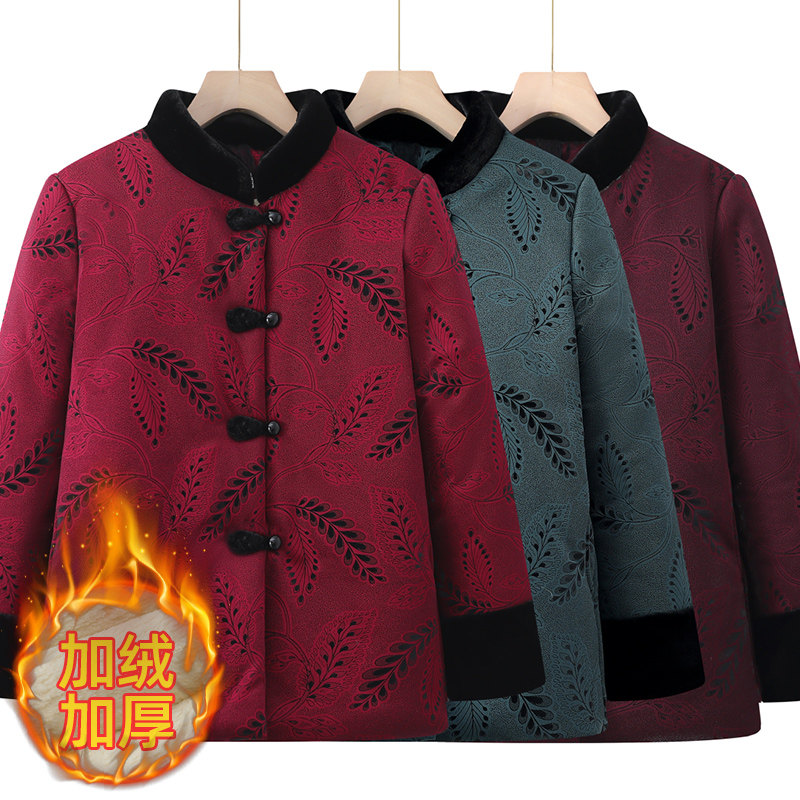 妈妈秋冬季加绒外套女中老年人大码宽松翻领棉衣三层加厚棉服上衣