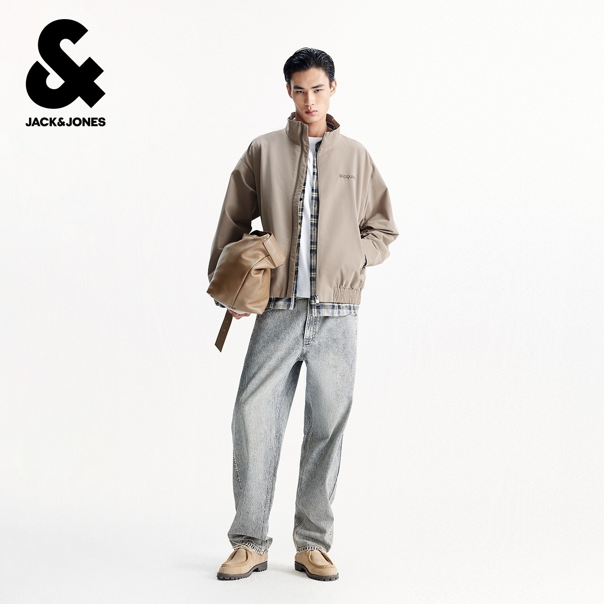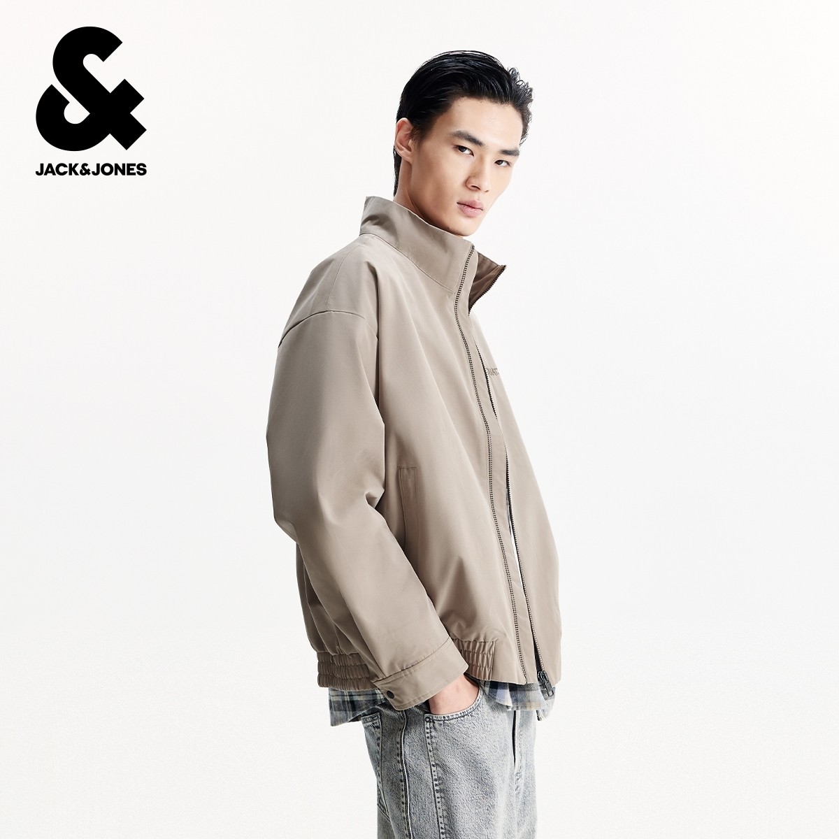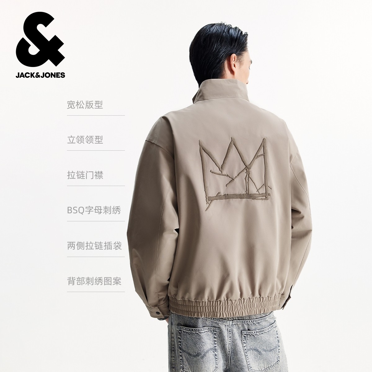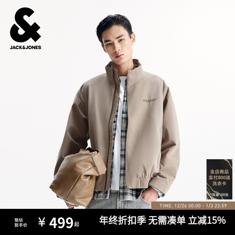 杰克琼斯BSQ联名款男装秋季新款字母刺绣宽松休闲立领夹克外套