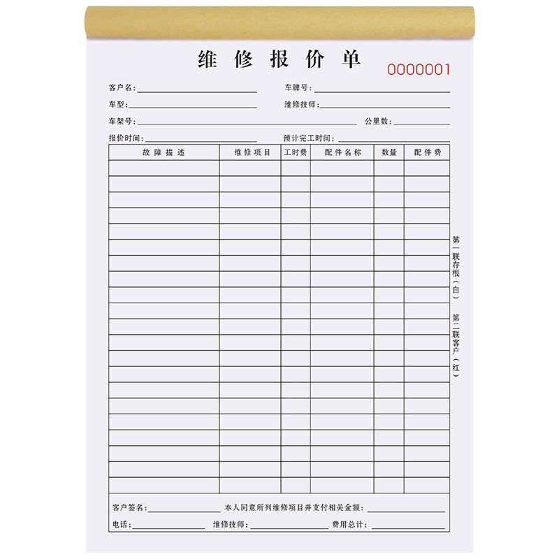 汽车维修报价单两联修理厂工时服务明细表修车保养工单接车单机修