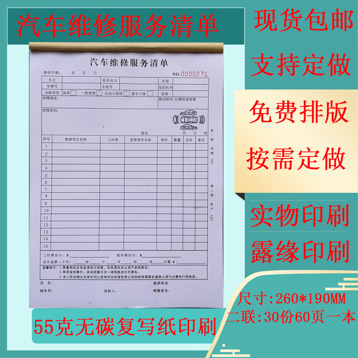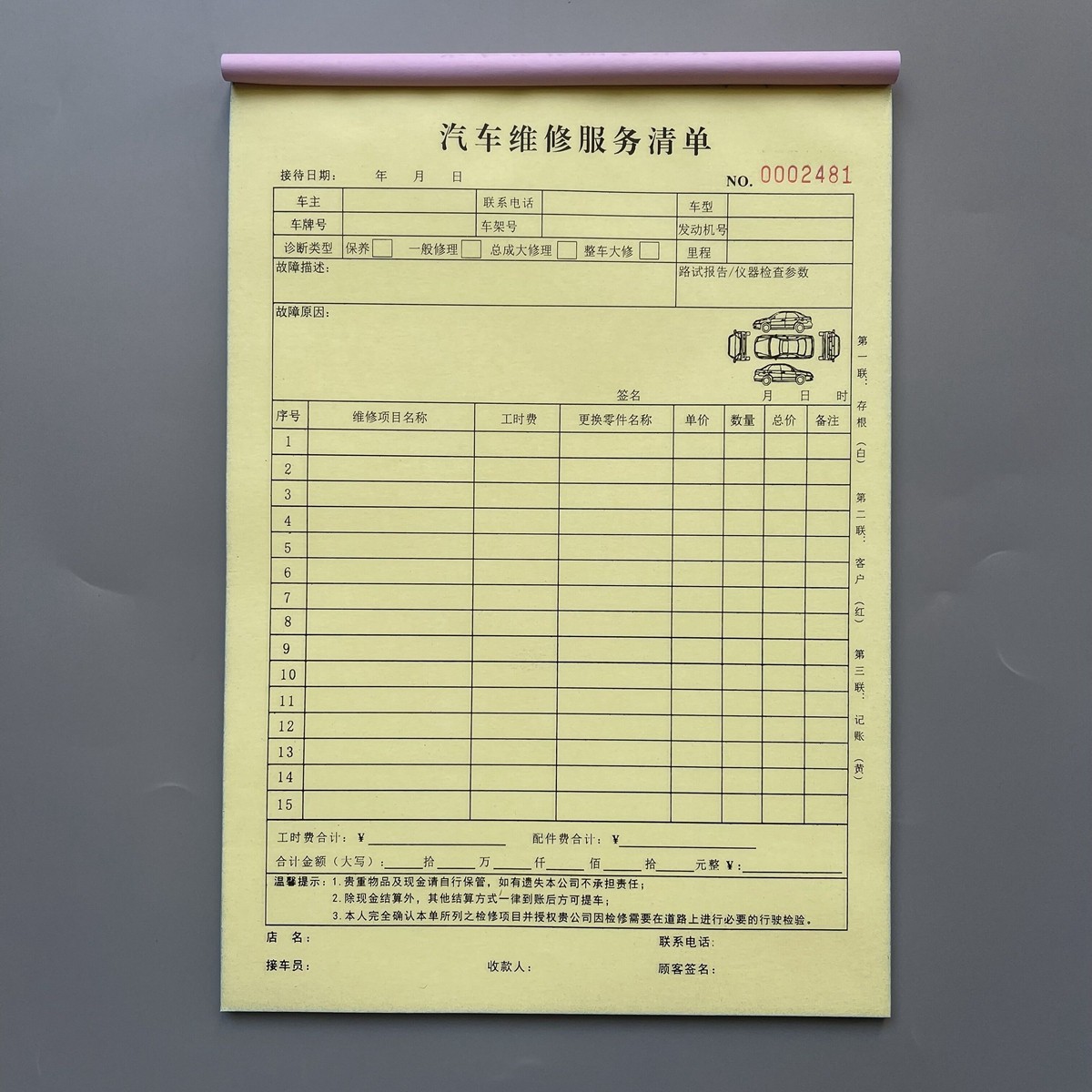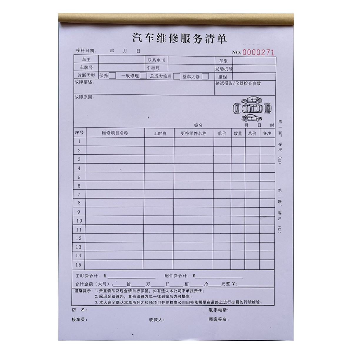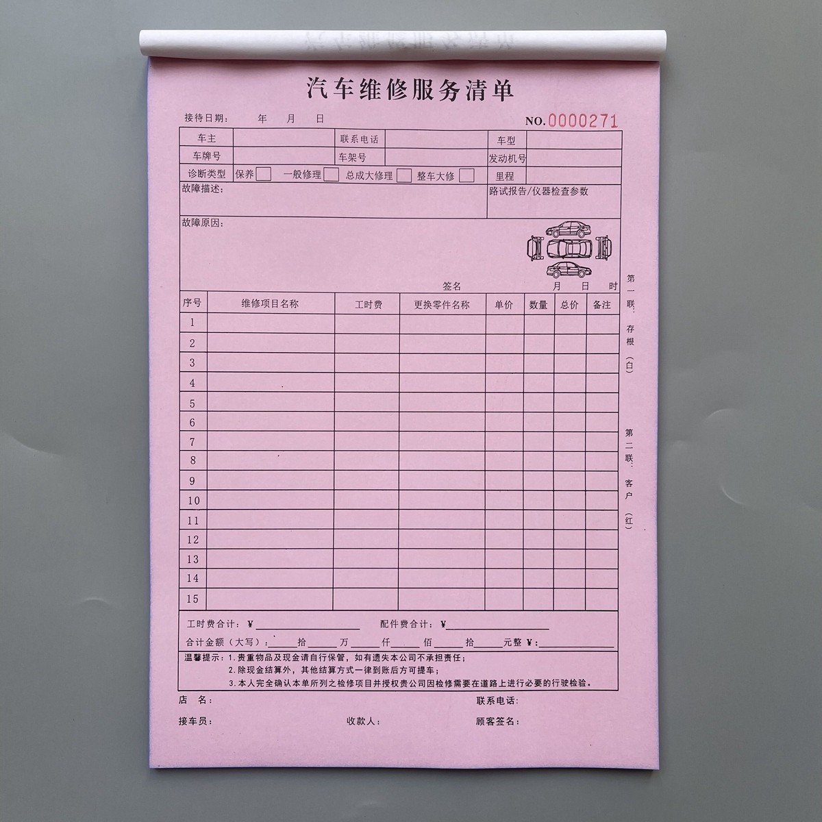 汽车维修服务清单汽车贴膜施工单车辆修理单报价单保养记录本定做
