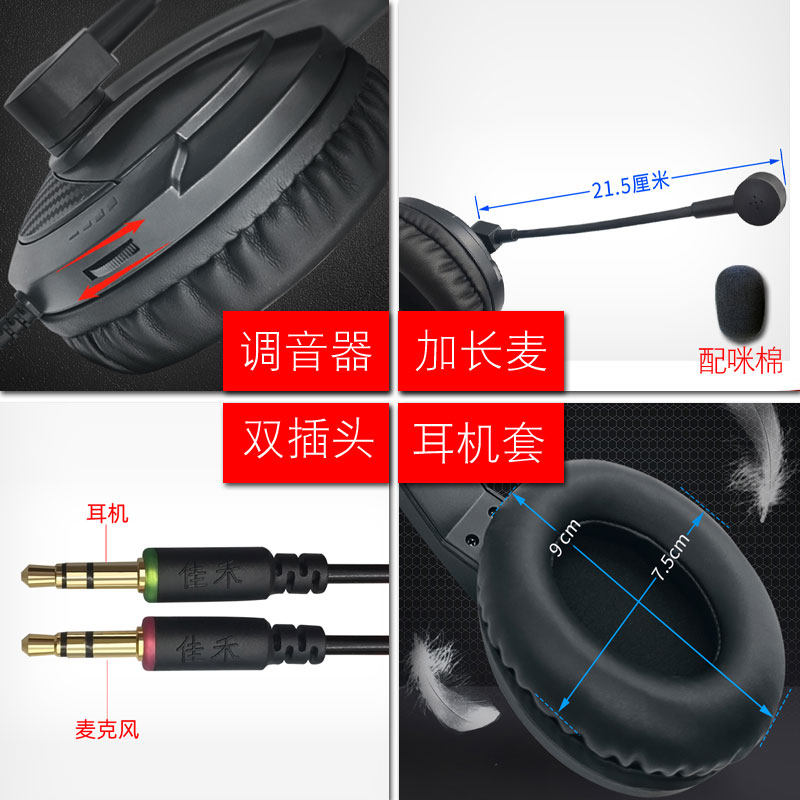 佳禾电脑耳机带麦 头戴式中考高考英语听力听说考试专用录音双760