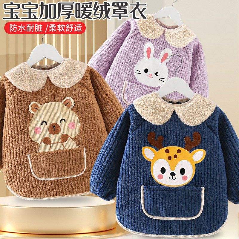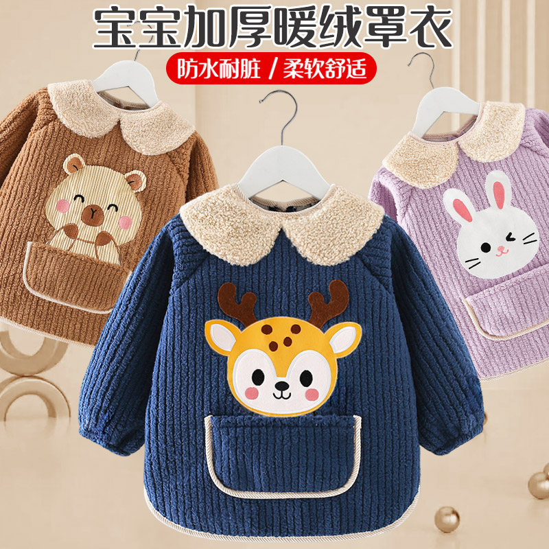儿童罩衣秋冬加厚绒宝宝吃饭围兜防水防脏围裙婴儿幼儿园洋气外穿