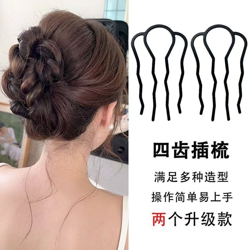 四齿插梳u型发夹盘发工具2025新款懒人丸子头发梳固定发卡u形发簪