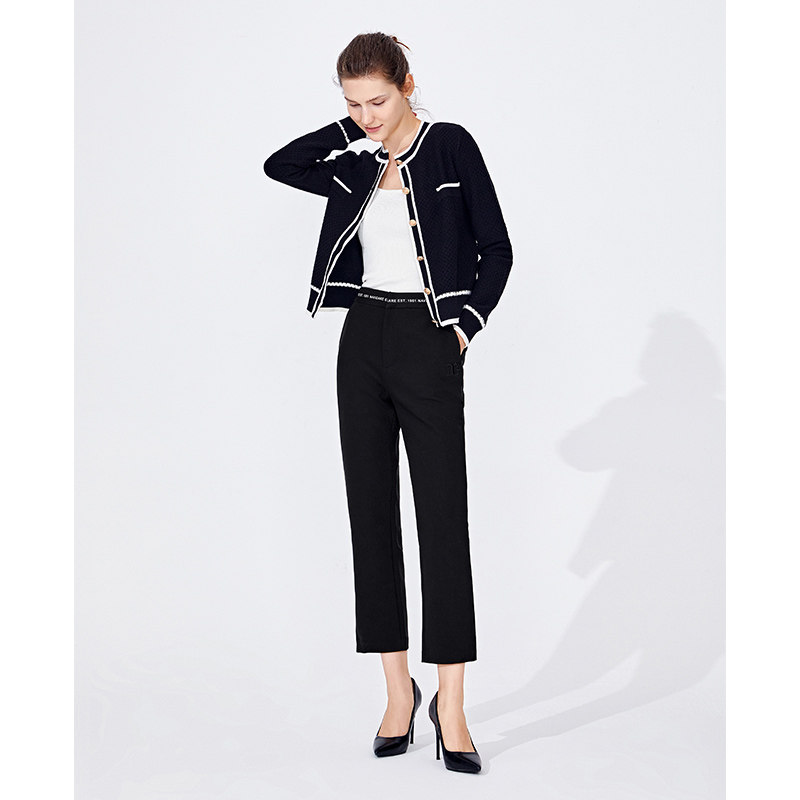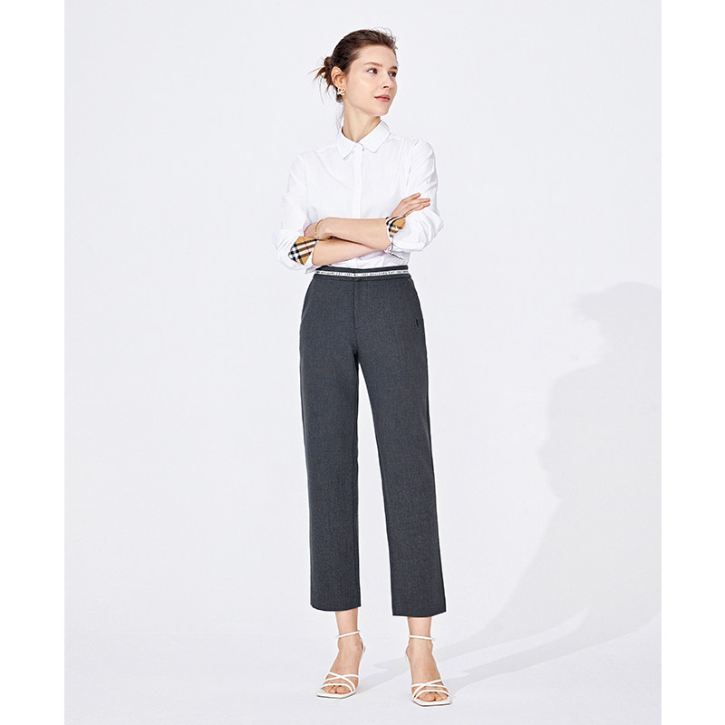 Navigare意大利小帆船灰色直筒休闲裤女秋季显瘦九分裤子商务西裤