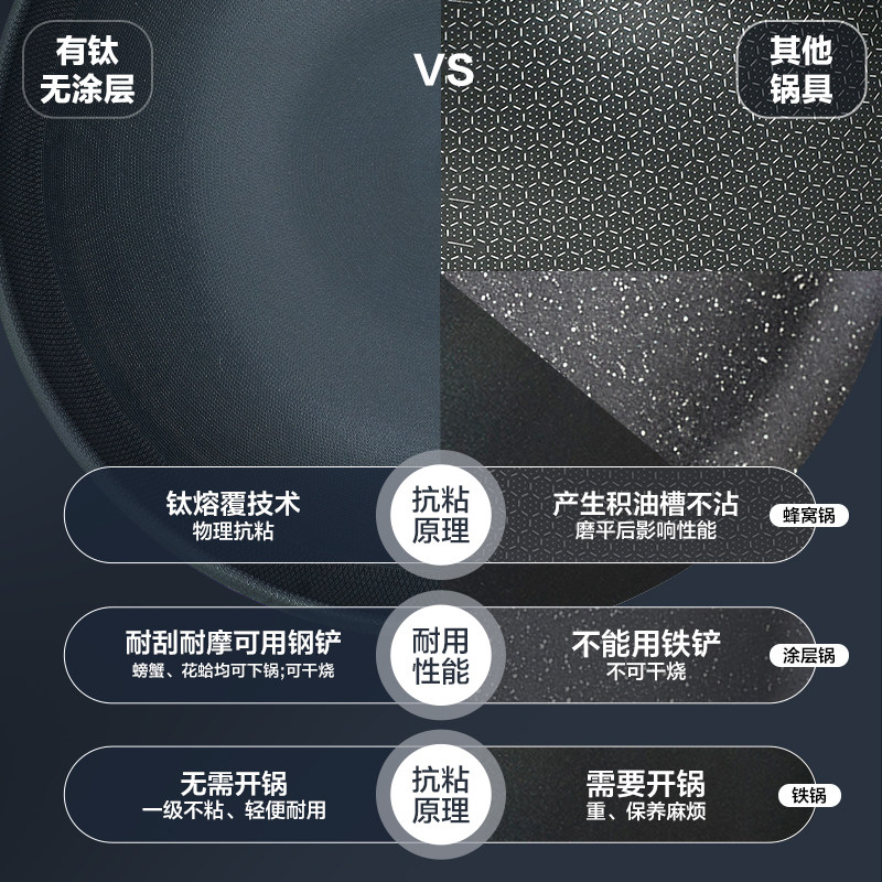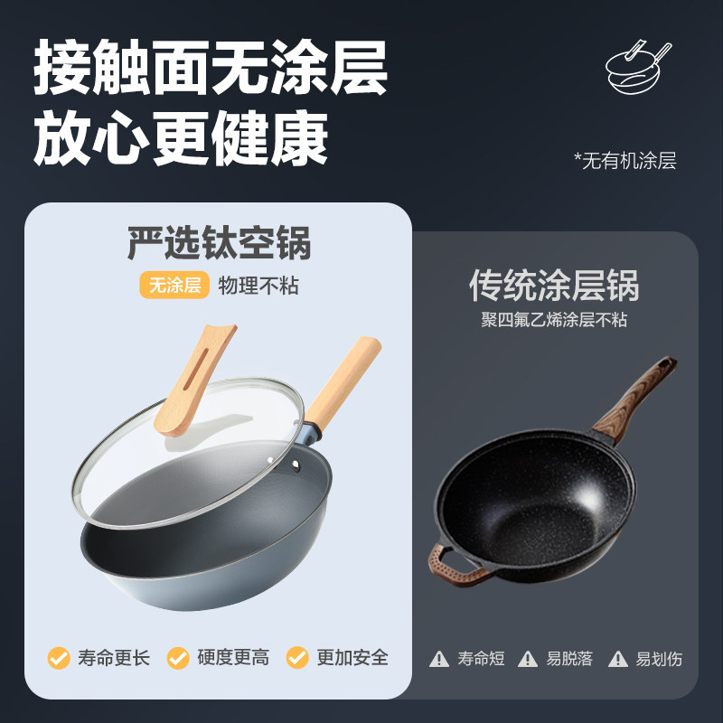 网易严选无涂层不粘锅炒锅钛炒锅家用多功能炒菜锅铁锅具燃气灶