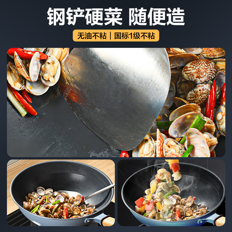 炊大皇无氟涂层不粘锅炒锅家用聚油不沾锅燃气电磁炉用钛锅炒菜锅