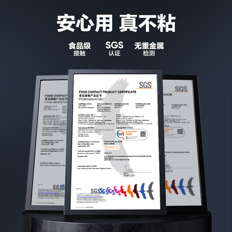 德国三头鹰无涂层钛锅不粘锅电磁炉燃气纯钛炒锅多功能家用炒菜锅