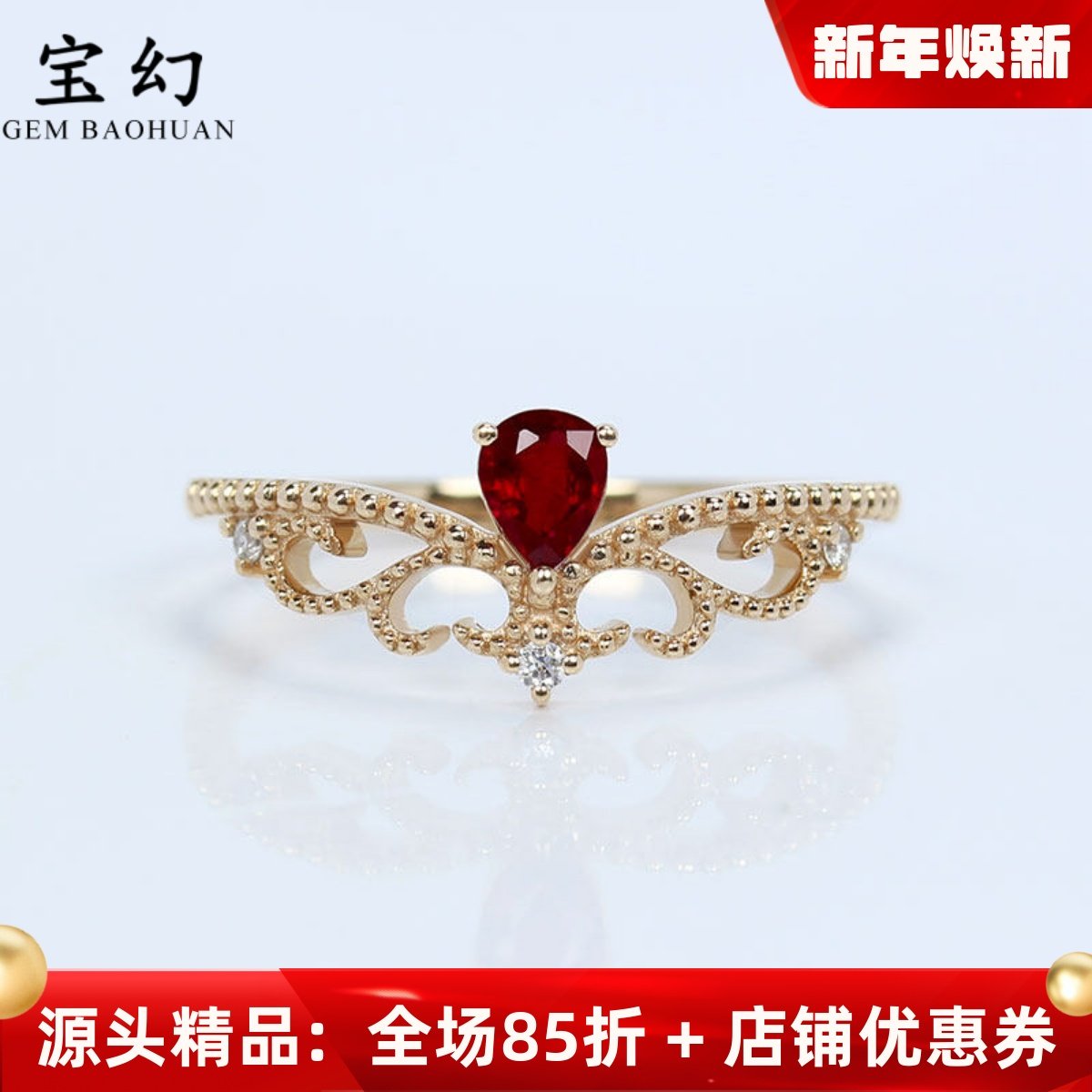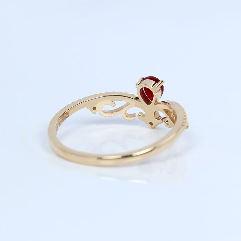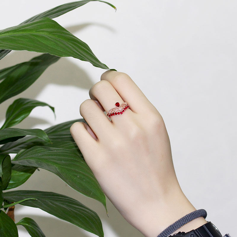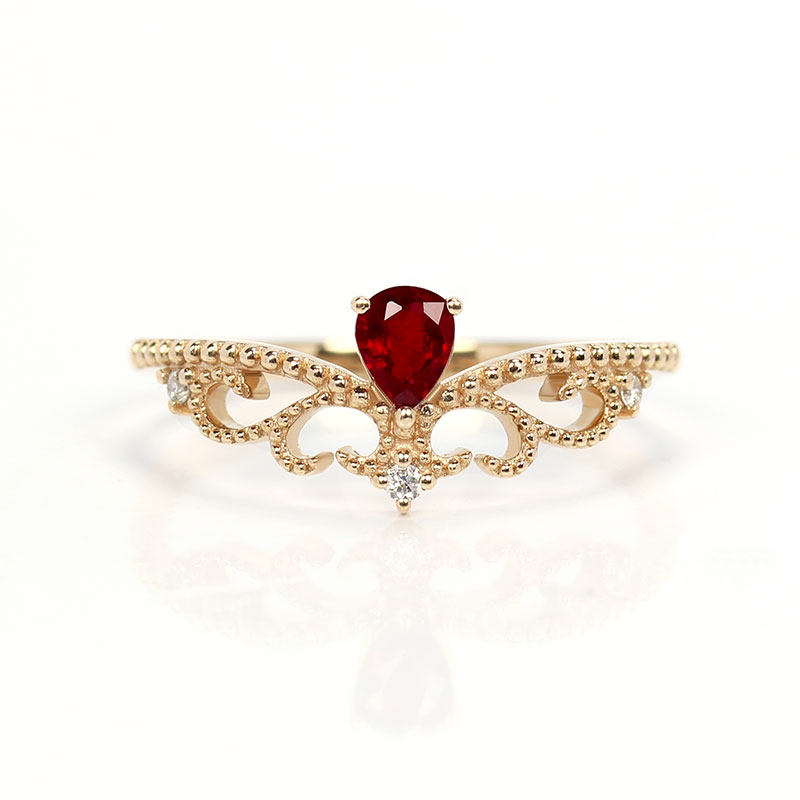 18K玫瑰金天然鸽血红宝石水滴皇冠戒指 彩宝群镶钻石女戒茜茜公主