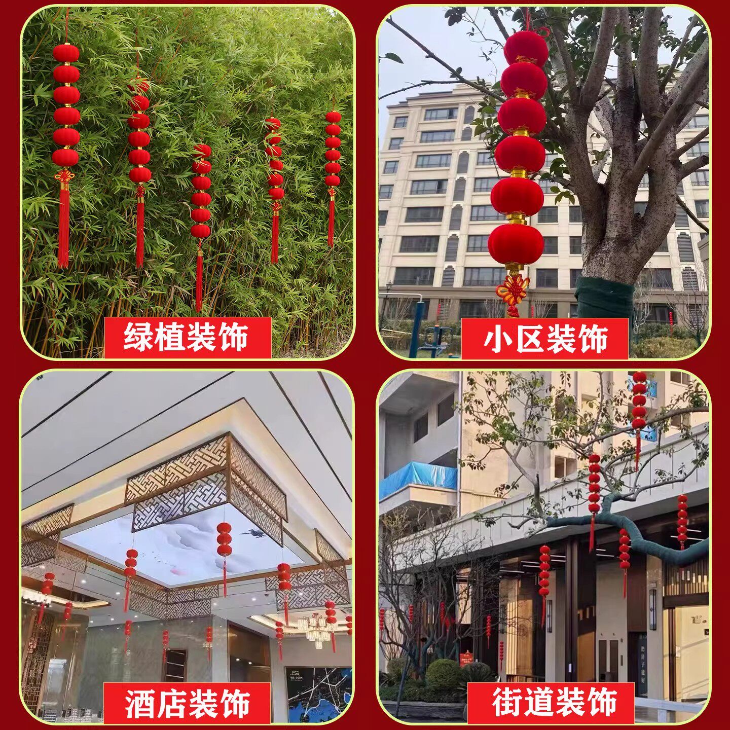 过年小灯笼串挂饰结婚布置新年户外装饰树上植绒大红灯笼绒布新春