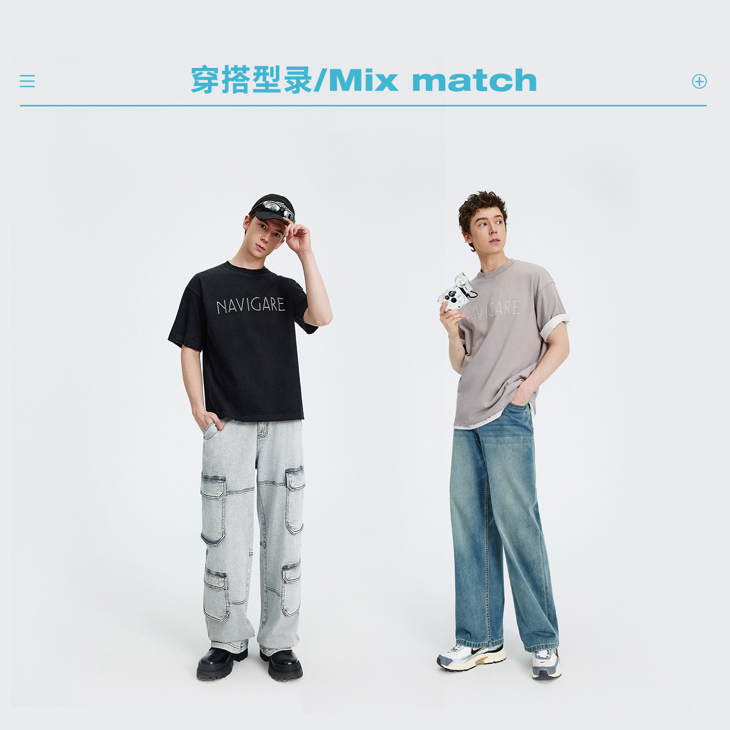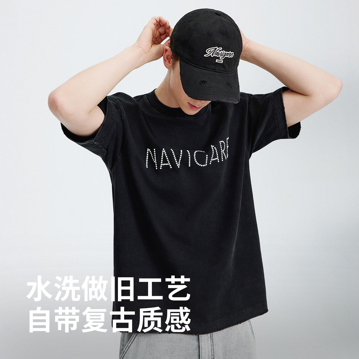 Navigare意大利小帆船黑色宽松短袖T恤男2026夏季纯棉圆领套头衫