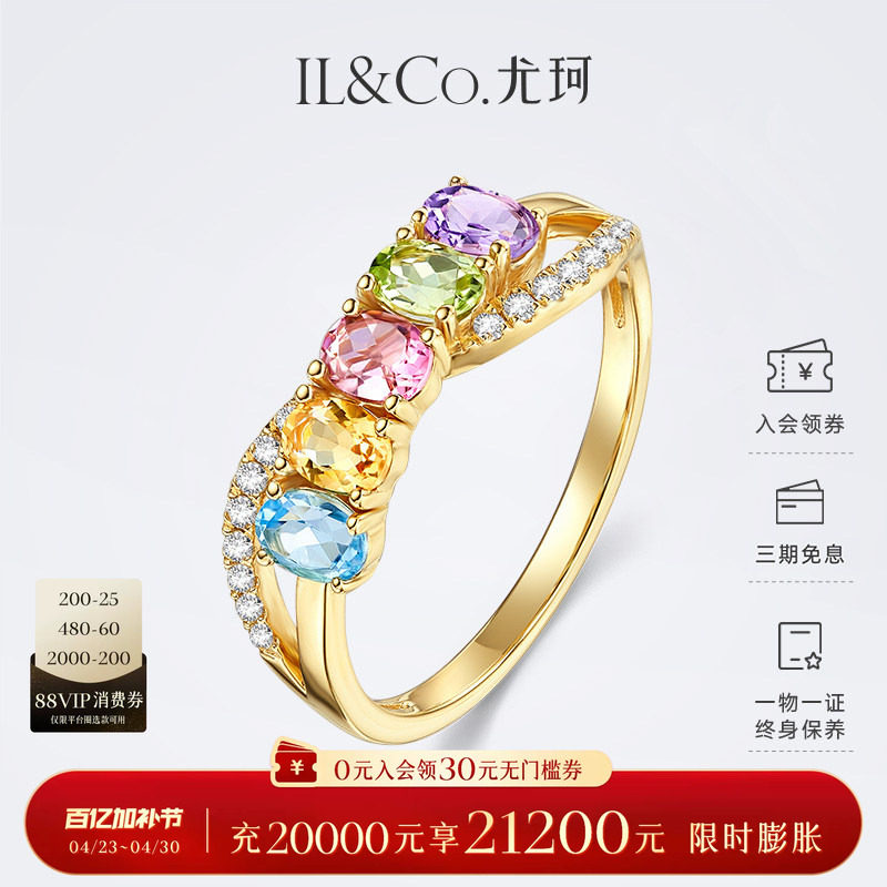 ILCO尤珂「和彩旋律」黄18K金天然多色宝石戒指彩虹碧玺彩宝女戒
