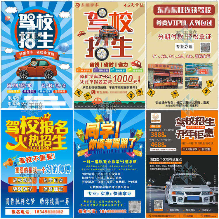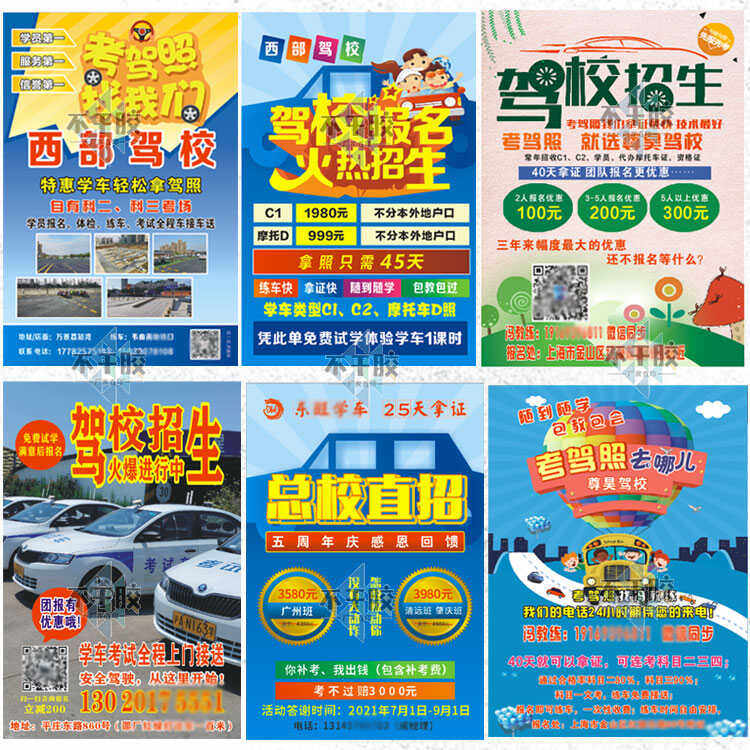 驾校招生传单定制会计律师家政健身培训短柳钉扇子暑假班海报印刷