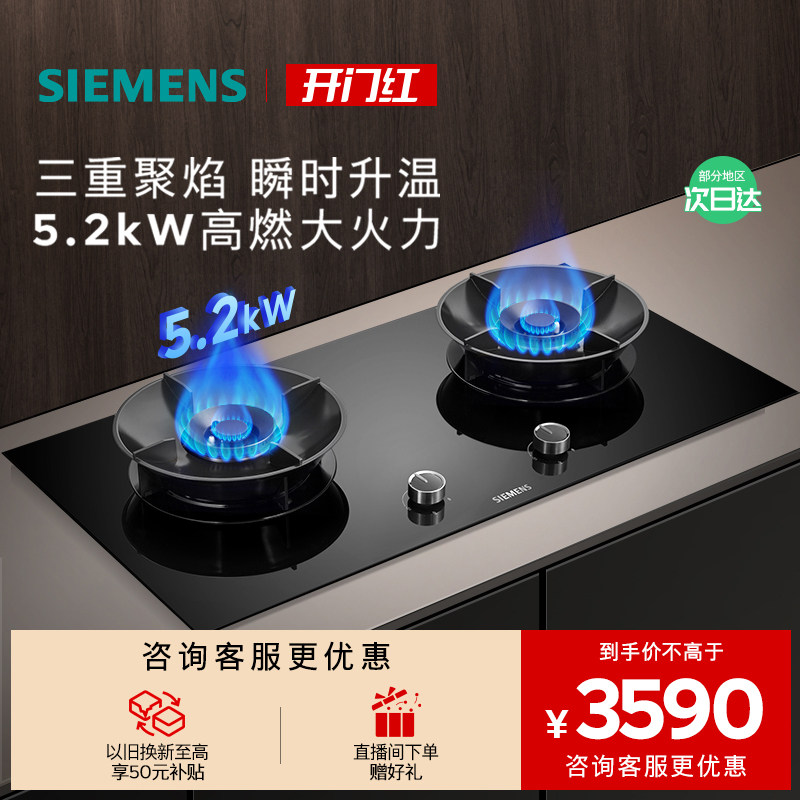 西门子嵌入式燃气灶具5.2大火力厨房家用双灶玻璃天然气95A3MB