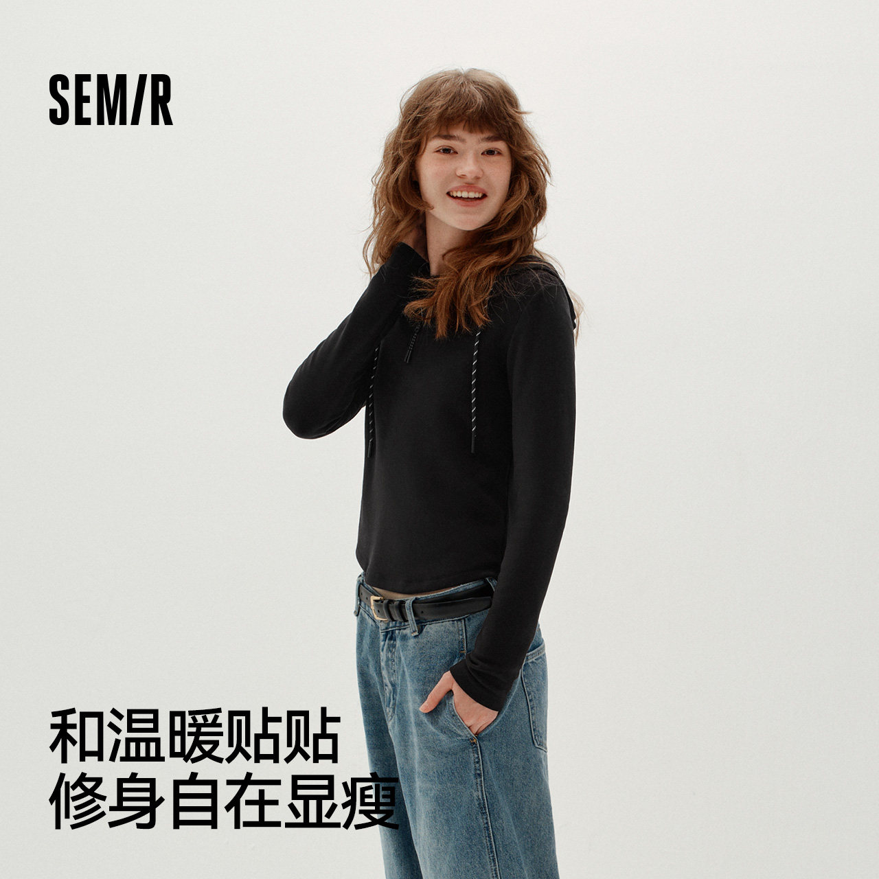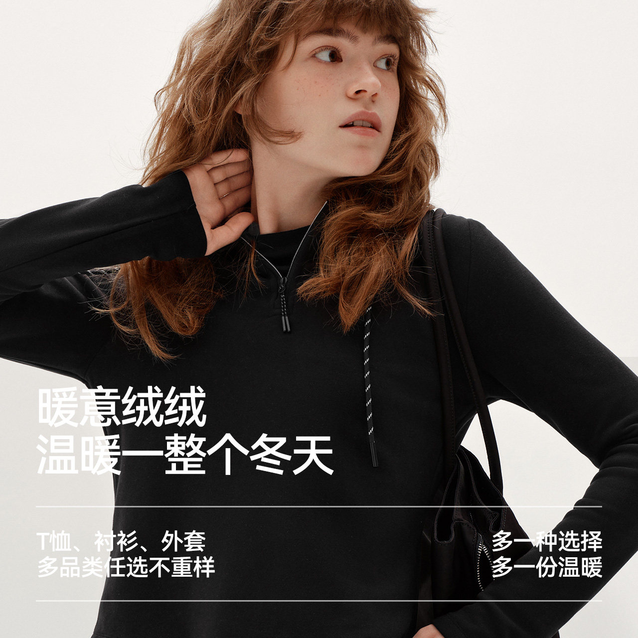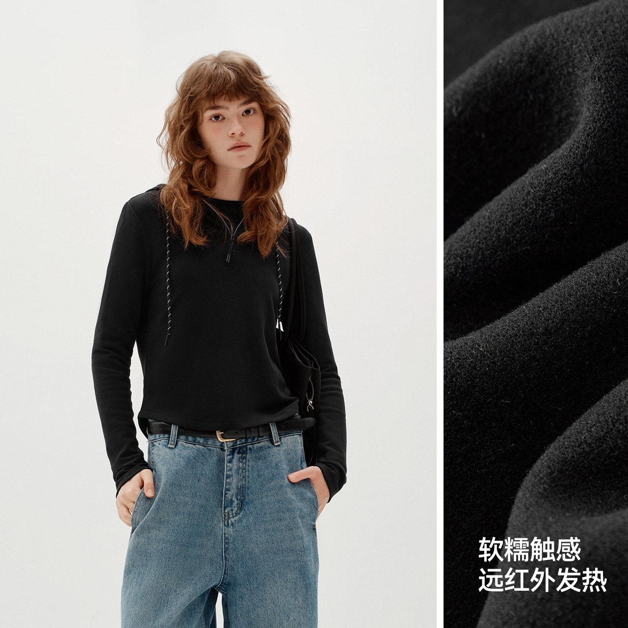 商场同款|森马长袖T恤女冬季半拉链连帽发热抓绒修身2025新款上衣
