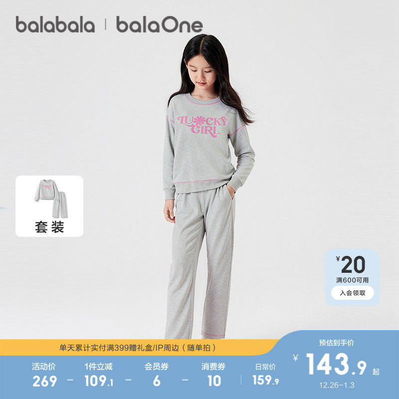 巴拉巴拉童装女童套装儿童长袖两件套2025新款秋冬装运动休闲时尚