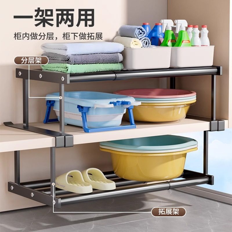 洗脸盆收纳架子浴室柜下悬挂分层盆子置物架卫生间可伸缩挂盆神器