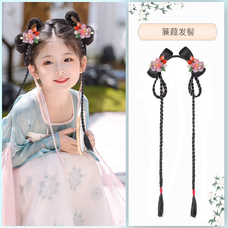 儿童汉服假发古装发箍一体式古风垫发包女童盘发发髻头饰国风流苏