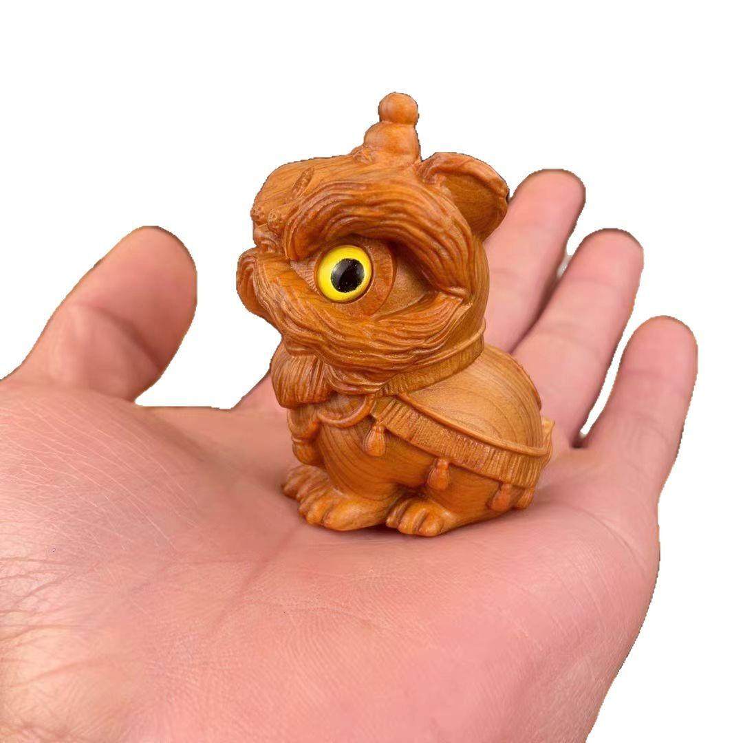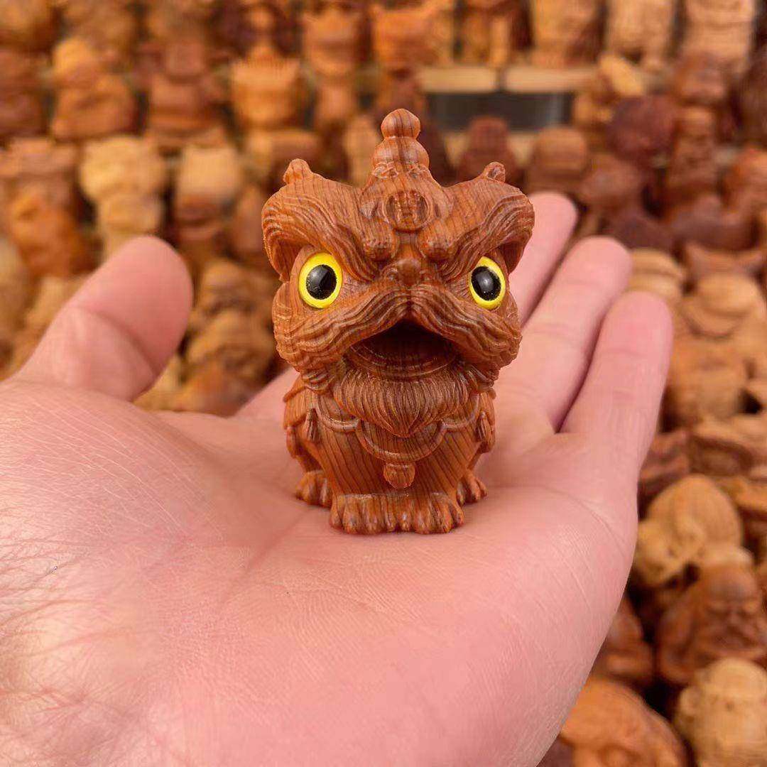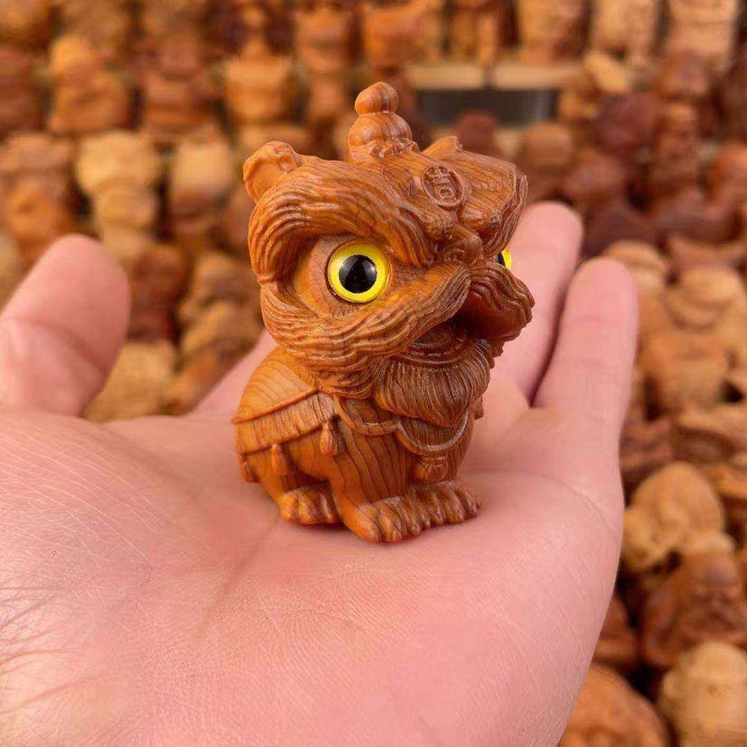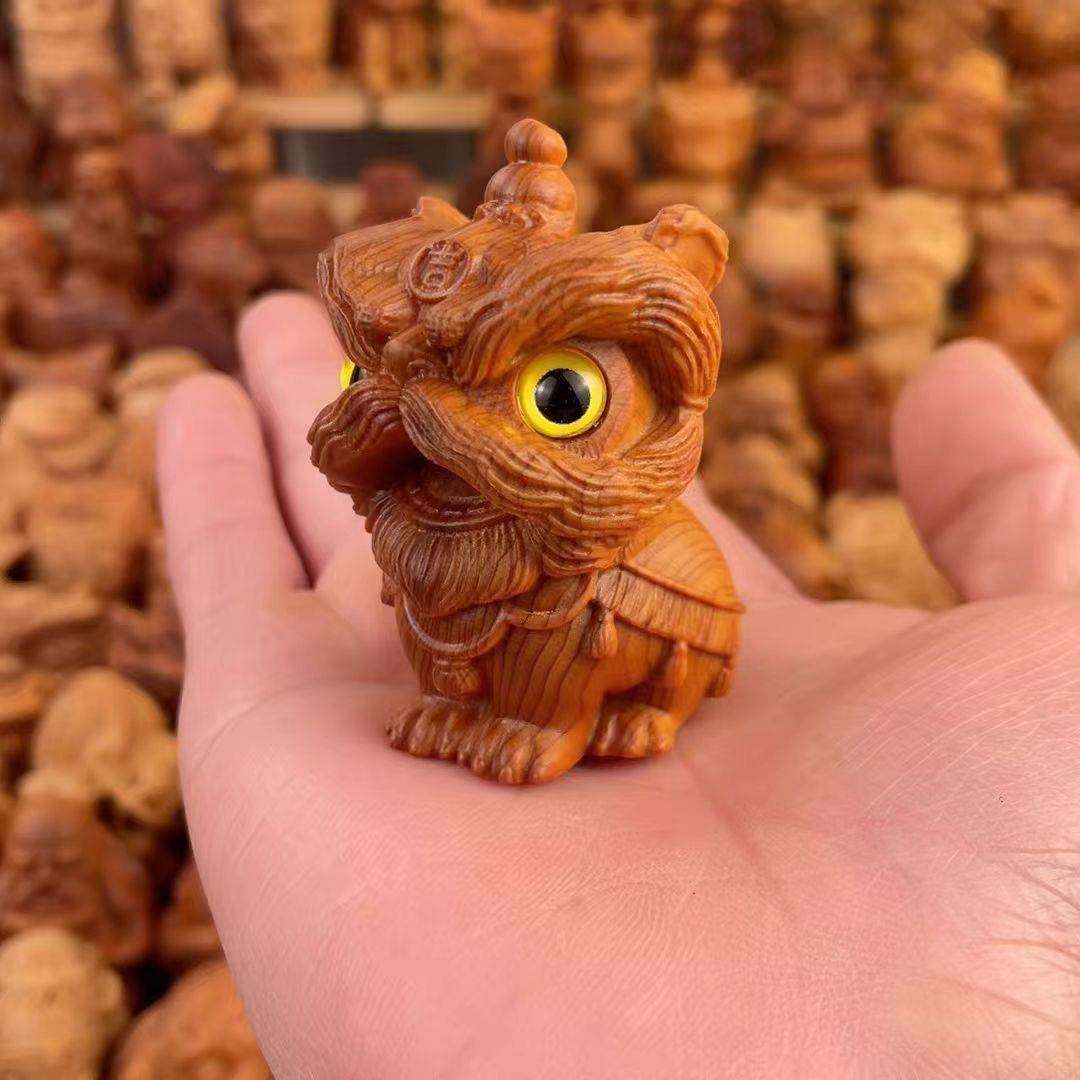 陈化崖柏瑞兽小醒狮手把件木雕手工国潮文玩汽车桌面摆件灵动瑞兽