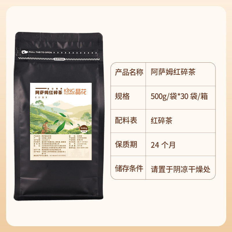 晶花精选红茶珍珠奶茶店原材料茶叶阿萨姆红碎茶袋装500g