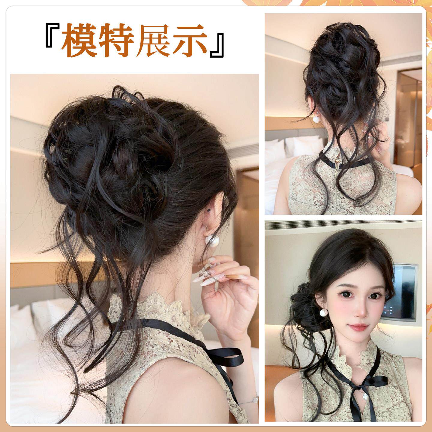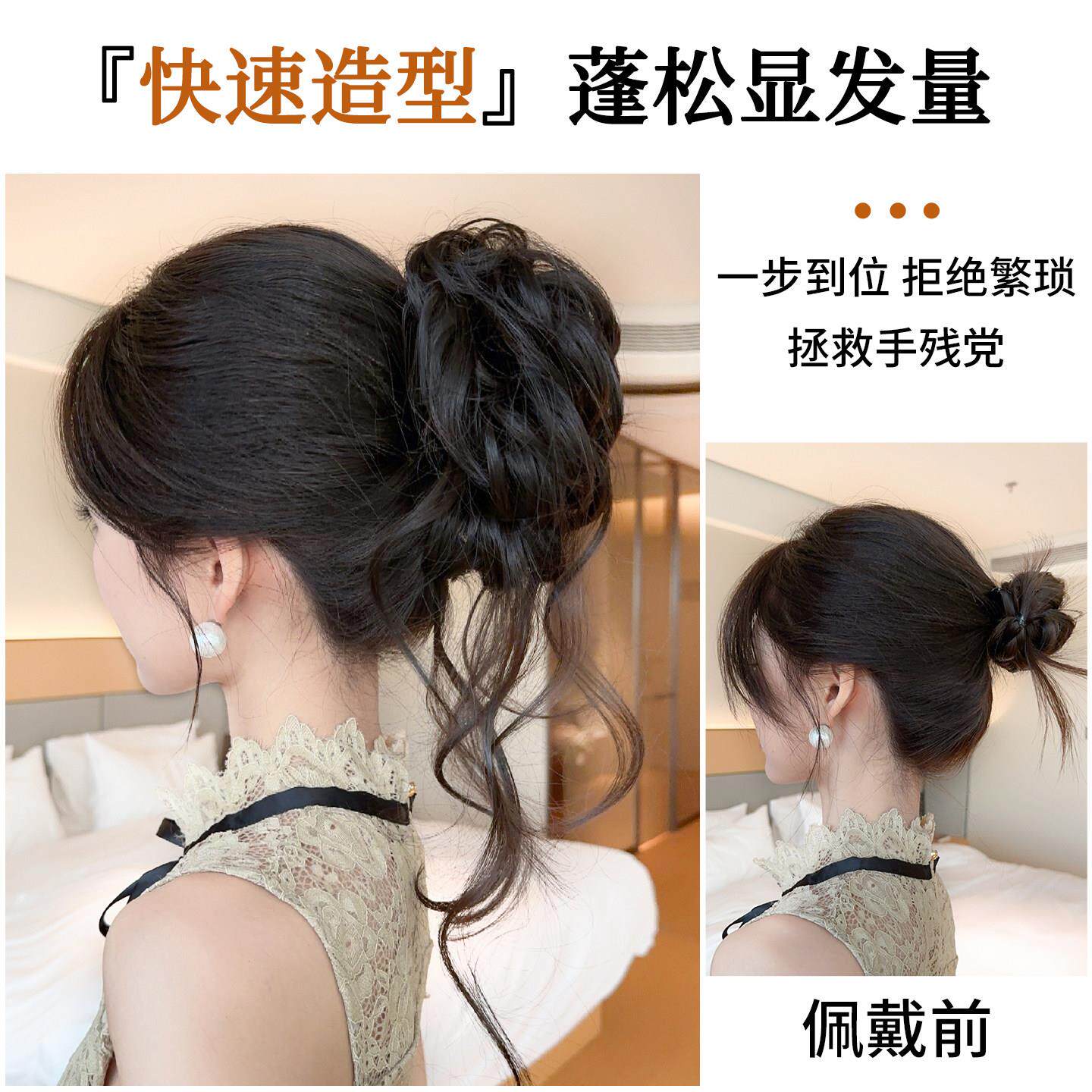 低扎丸子头假发鸡毛头抓夹盘发发包慵懒感造型头饰自然蓬松后脑勺