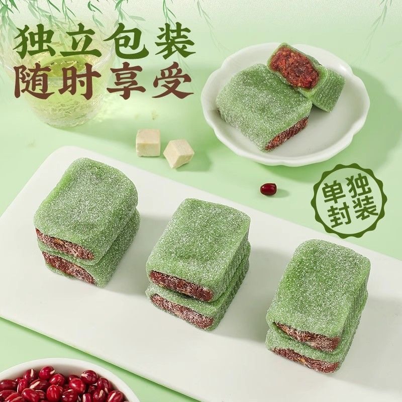 冰皮荷叶红枣红豆糕龙井味糯米糕糍粑糕休闲解馋糕点零食独立包装