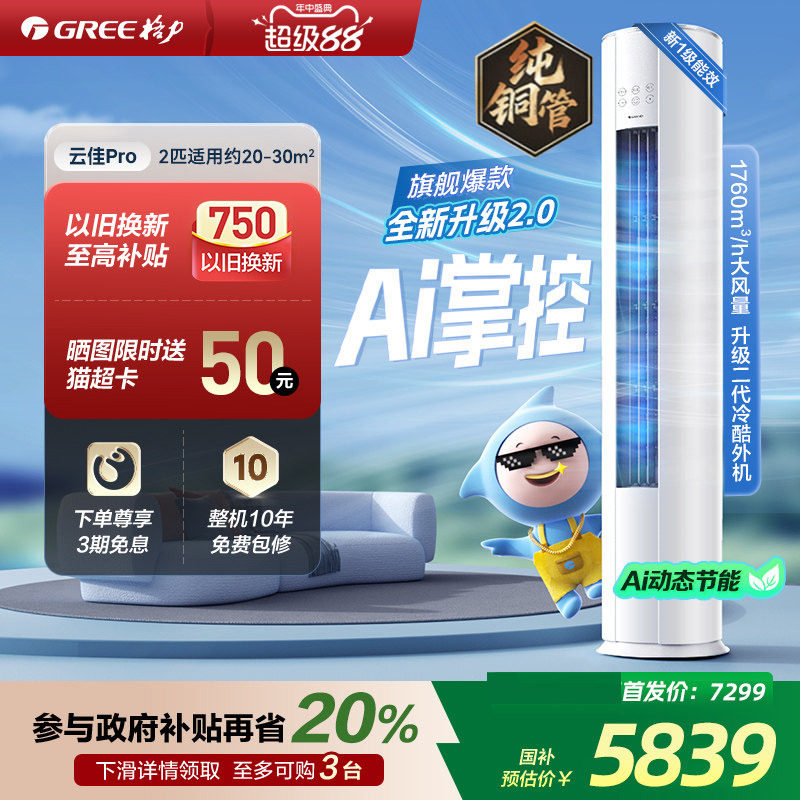 【格力官方】格力空调新一级能效2匹柜机云佳pro官方旗舰店正品