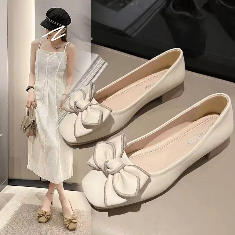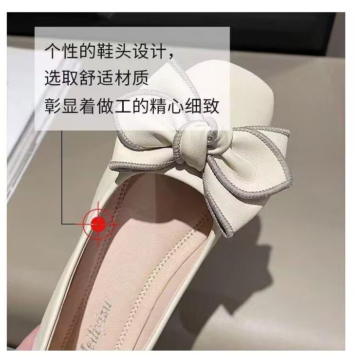 法式单鞋女2025夏新款平底百搭蝴蝶结奶奶鞋软底浅口一脚蹬玛丽珍