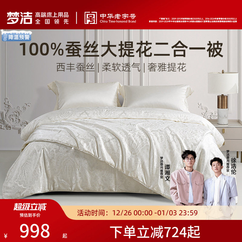 梦洁100蚕丝被子二合一被子母被四季通用被芯秋冬保暖家用提花