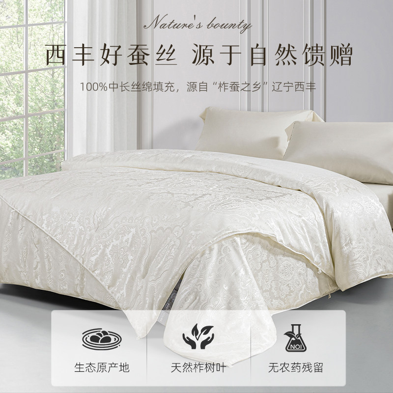 银桑INESANCE100支A类全棉提花双宫茧桑蚕丝被春秋子母被子被芯冬